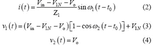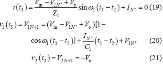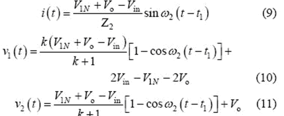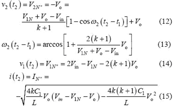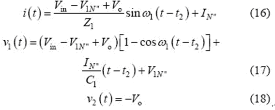 當(dāng)v2(t2)= -Vo 時(shí),該模式結(jié)束,可得到如下表達(dá)式