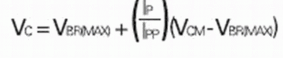 假設(shè)二極管的電壓是VBR(MAX)(最壞情形中的導(dǎo)電開端)和VCM(對應(yīng)于最大電流IPPM的箝位電壓)之間電流的線性函數(shù),并且VBR(MAX)位置的電流相對于IPPM可忽略不計(jì),則中等電流時(shí)箝位電壓的保守估算值為