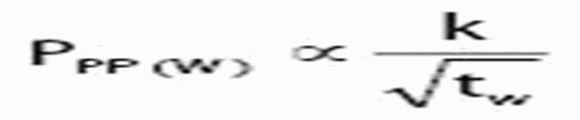 其中k為與波形能量相關(guān)的常量——其功率曲線的時(shí)間積分,而tw為脈沖寬度。制造商的數(shù)據(jù)表經(jīng)常以降額曲線的形式說明此項(xiàng)關(guān)系。