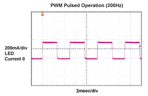 - 通過低頻PWM脈沖調制LED電流,控制LED燈源亮度