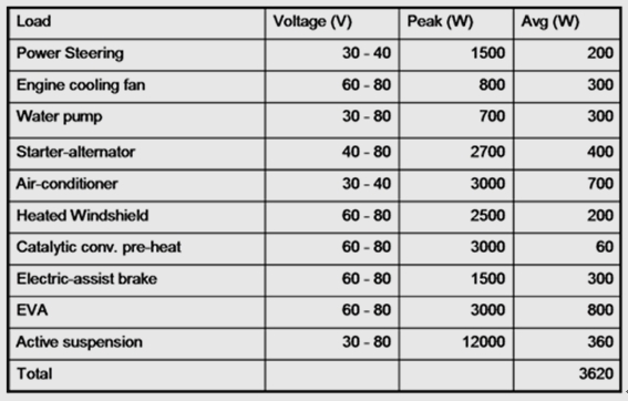 圖1. 各種汽車應(yīng)用及其相關(guān)電壓和功率范圍的幾個實(shí)例