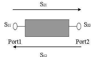 二端口網絡有四個S參數,Sij代表的意思是能量從j口注入,在i口測得的能量,如S11定義為從Port1口反射的能量與輸入能量比值的平方根,也經常被簡化為等效反射電壓和等效入射電壓的比值,各參數的物理含義和特殊網絡的特性如下: