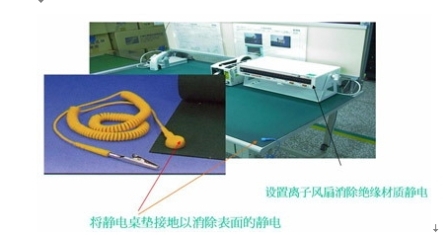 圖2 使用離子風扇并將靜電桌布接地以避免ESD