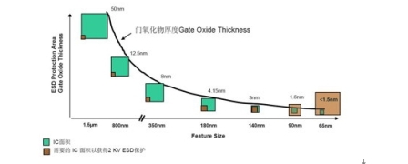 圖4 隨著IC面積的不斷減小,很難在IC中集成ESD保護電路(資料來源:安森美半導體)