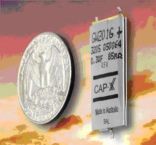 CAP-XX公司專門針對便攜式市場推出了GS/GW系列單節和雙節超級電容器(圖5)。這些電容提供了電能有限的電池的替代品,壽命非常長,單節配置電壓為2.3V,串聯連接的雙節電容器電壓可達4.5V。