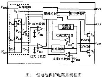 (3) 充電過流檢測: VM 端信號還可以反映電池接充電器時, 充電電流的大小, 再經(jīng)充電檢測比較器(CHARGEDETECTION ) 比較后, 由邏輯控制電路決定是否應(yīng)停止充電。