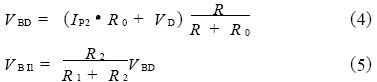 設(shè)二極管正向壓降為VD , 分壓電阻R1、R 2、R 3、R 4 對R0的影響可以用等效電阻R= (R 1 + R 2 ) ∥ (R 3 +R 4) 來表示, 則在正常工作時, 滿足