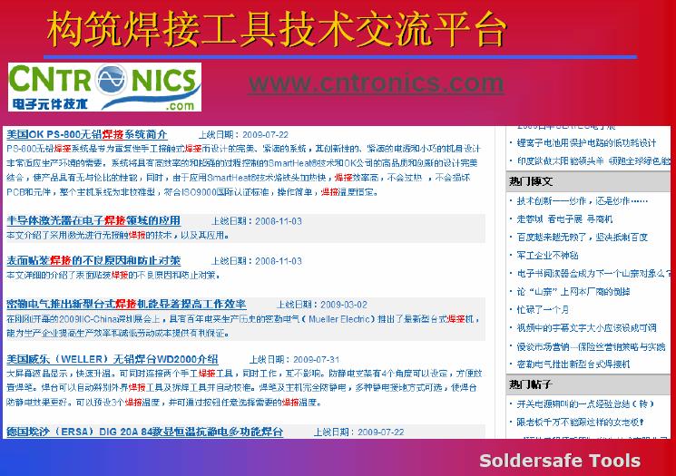 電子元件技術網http://www.mengyueyun.cn/club/muellerindex?ref=top_nav可以提供給我們一個平臺,在這個平臺里面,我們可以對于焊接設備的一些使用性能可以進行一些討論,對于新型焊接工藝本身的工藝特點進行一些分析,對于焊接材料,對于新工藝、新材料我們可以進行相應的分析,大家也可以直接,如果網絡方便的話,登錄到這個網站,我相信在這個平臺上可以一起努力,為之后的行業發展起到更多的推動作用。