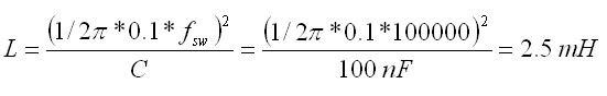 根據電磁干擾的屬性及濾波器元件的復雜特性,電容C1和C2起始選擇了100 nF電容。選擇的差分電感L1用于提供L-C濾波器頻率,約為開關頻率的1/10。所使用的電感值是:
