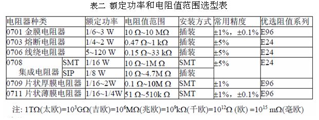 1、金屬膜電阻器:1W以下功率優選金屬膜電阻,1W及1W以上功率優選金屬氧化膜電阻。
