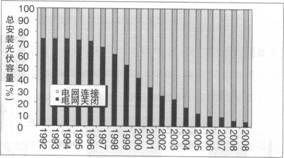 IEA PVPS的數(shù)據(jù)顯示,2009年該項(xiàng)目成員國(guó)共安裝光伏容量6.2GW(全球安裝約7GW),其中超過95%為并網(wǎng)系統(tǒng),如圖1。