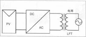 工頻隔離并網(wǎng)逆變器(如圖3)具有電氣隔離、消除電流直流分量等優(yōu)點(diǎn),但體積重量大、價(jià)格高,只有94%—96%的系統(tǒng)效率。