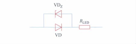 單個(gè)LED 仿真模型如圖4 所示,其中VD 為理想二極管,VDZ為理想單向擊穿二極管,RLED為LED等效串聯(lián)阻抗。仿真中設(shè)定單向擊穿二極管VDZ兩端電壓為: UD = 3. 0 V,設(shè)定等效串聯(lián)阻抗為: RLED = 0. 35 Ω。