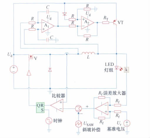 本文提出一種有源紋波補(bǔ)償BUCK 型LED 驅(qū)動電路。該電路無需使用大容量電解電容,所需要的小容量電容可以采用能量密度較小的新型長壽命電容,利用有源補(bǔ)償技術(shù)抑制輸出紋波電流。由于取消電解電容的使用,可以使電路壽命增長,穩(wěn)定性提高,便于集成,電路易小型化。