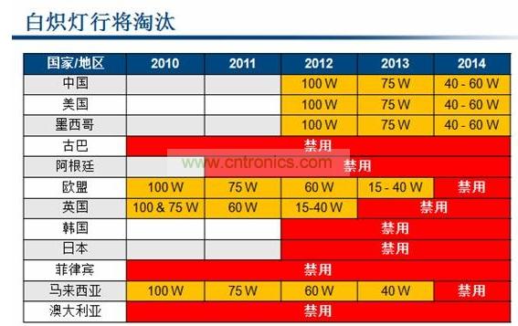 Power Integrations產(chǎn)品營(yíng)銷(xiāo)經(jīng)理Andrew Smith道:“所有的國(guó)家都是先從大功率的100W白熾燈開(kāi)始淘汰,接下來(lái)才是75W等小功率的白熾燈。歐盟在2010年就淘汰了100W白熾燈,美國(guó)、中國(guó)等則是在2012年開(kāi)始淘汰。所以市場(chǎng)上對(duì)于能替換100W白熾燈的大功率LED是有非常強(qiáng)勁的市場(chǎng)需求的。”