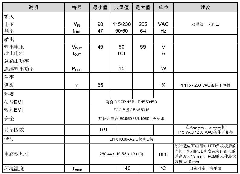 此設計的主要目標是超薄和高效率。這樣有助于使驅動器板適應T8燈管內LED負載板后的空間,并將工作時的溫升保持在可接受的范圍以內。為此,必須認真選擇元件和安裝方法,但這相比于方案的更換更加簡單,因為初級側調節的LinkSwitch-PH設計所需的元件數量很少。