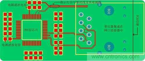 圖 3一體化連接器的網(wǎng)口PCB布局、布線參考圖