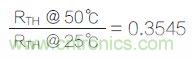 同樣,50℃時(shí)的RTH為10,000×0.3545≈3545Ω。