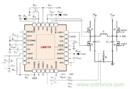 圖2.具有電流模式控制器的4開關降壓-升壓轉換器的電路原理圖。