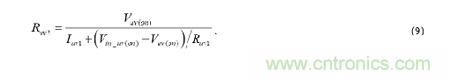 欠壓閉鎖電阻器分別設定了針對轉換器啟動與關斷的上升和下降輸入電壓閾值。選擇上限UVLO電阻值來設定遲滯。那么,如果VNV(ON)是UVLO比較器上限閾值,相應的下限UVLO電阻值最終為[4]