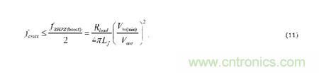 要微調已經增加的帶寬,只需增加補償電阻RC,并且按照需要調整針對相位裕量的CC1。當然,與升壓相關的右半平面零點 (RHPZ),以及交叉頻率低于RHPZ頻率的50%,實現可以接受的相位裕量等約束條件由以下方程式給出: