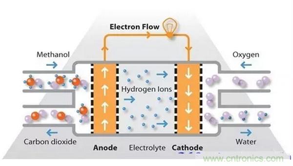 直接甲醇燃料電池(DMFC)是一套相對較新的燃料電池技術;它是在20世紀90年代由美國的幾個機構的研究人員發明和開發的,包括NASA和噴氣推進實驗室。它類似于PEM電池,因為它使用聚合物膜作為電解質。然而,DMFC陽極上的鉑-釕催化劑能夠從液體甲醇中吸收氫,消除了對燃料重整器的需要。因此純甲醇可以用作燃料,因此名稱。