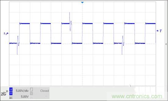 調(diào)試中發(fā)現(xiàn),驅(qū)動器上電但未開啟輸出,電機轉(zhuǎn)軸處于自由靜止?fàn)顟B(tài),測量到一個較大的值。用示波器測量傳感器輸出,發(fā)現(xiàn)100kHz脈沖上每個幾個周期出現(xiàn)一些尖峰振蕩,經(jīng)過比較器后多了些脈沖,導(dǎo)致測頻結(jié)果高于100kHz。那么干擾信號從何而來?首先懷疑是驅(qū)動器,驅(qū)動器斷電干擾消失。把傳感器電纜從傳感器處拔出,100kHz和干擾都沒有了。證明干擾由驅(qū)動器產(chǎn)生,通過驅(qū)動器輸出線、電機、扭矩傳感器及連線耦合到功率分析儀。