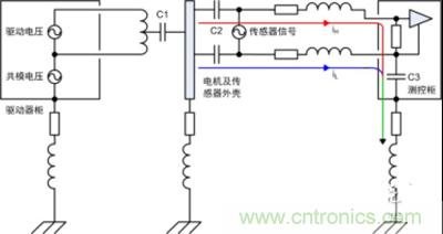 4)此處電機平臺和測控柜已有接地,通過傳感器連接線屏蔽層又將兩者連接,形成地環(huán)路。然而實際工程應(yīng)用中地環(huán)路往往不可避免地存在,本例中若沒有屏蔽層依然會通過C2、電纜和C3產(chǎn)生高頻地環(huán)路,從這方面看屏蔽層改變了環(huán)路路徑。