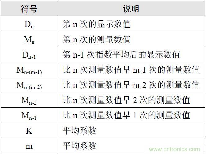 移動(dòng)平均法,用戶可設(shè)定移動(dòng)個(gè)數(shù)對(duì)電壓或電流有效值、有功功率的瞬時(shí)值(采樣數(shù)據(jù))進(jìn)行移動(dòng)平均,其原理是采集N個(gè)信號(hào)之后對(duì)這些數(shù)據(jù)求平均,其中移動(dòng)個(gè)數(shù)N可以手動(dòng)設(shè)置,移動(dòng)個(gè)數(shù)設(shè)置值越大測量值越穩(wěn)定,同樣對(duì)輸入變化的響應(yīng)速度也就越慢,該平均方法多用于信號(hào)本身存在波動(dòng)的情況,比如因負(fù)載波動(dòng)導(dǎo)致信號(hào)本身波動(dòng),就建議用移動(dòng)平均,移動(dòng)平均公式如下: