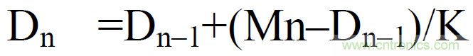 選擇指數(shù)平均法,用戶可設(shè)定衰減常數(shù)對(duì)電壓或電流有效值、有功功率的瞬時(shí)值(采樣數(shù)據(jù))進(jìn)行指數(shù)平均,去除被測量的高頻成分。其中衰減常數(shù)可以手動(dòng)設(shè)置,衰減常數(shù)設(shè)置值越大測量值越穩(wěn)定,對(duì)輸入變化的響應(yīng)速度也就越慢,也就是說測量延遲會(huì)相應(yīng)變長。該平均法常用于信號(hào)中存在高頻信號(hào),通過設(shè)定衰減常數(shù)減小高頻信號(hào)對(duì)數(shù)據(jù)的干擾,公式如下: