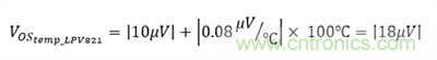 為最小化偏移誤差,LPV821零漂移毫微功耗運算放大器是一款理想器件。 使用Equation 5并假設操作溫度范圍為0°C—100°C,該器件產生的最大偏移誤差為: