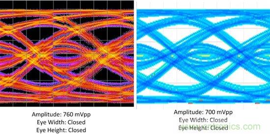 DS125BR820在筆者的系統輸出端打開了眼圖。圖2所示的實例1表明有足夠的余量,看來DS125BR820能補償更多的通道損耗同時使眼圖仍能保持開啟狀態。圖3所示的實例2展示了相反的情況:筆者的通道有太多的損耗,在這些運行條件下筆者很可能會看到誤碼,除非在通道的末端使用接收芯片的均衡功能。