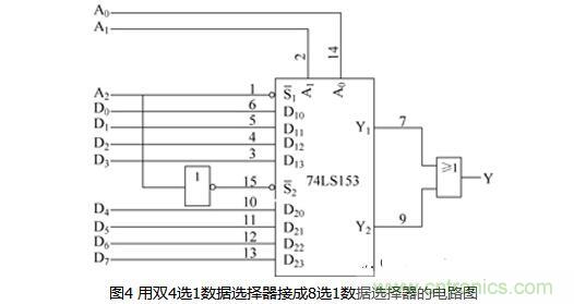 例1:用74LS153設計一個8選1的數據選擇器。