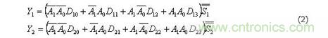 由表2可知,具有兩位地址輸入A0、A1的4選1數據選擇器,當使能控制端=0時,輸出與輸入之間的邏輯關系式為