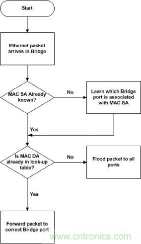 在圖1中,如果傳入幀的源地址(SA)以前沒有記錄,則將其與幀的傳入端口號一起添加到地址數(shù)據(jù)庫中。如果目標地址(DA)已經(jīng)存在于網(wǎng)橋的查找表中,則數(shù)據(jù)包會相應(yīng)地轉(zhuǎn)發(fā),否則幀將被泛洪處理。多年來,管理L2所用協(xié)議的IEEE標準(如802.1 MAC橋、VLAN和基于端口的網(wǎng)絡(luò)訪問控制標準)都集中在以太網(wǎng)幀的前16個字節(jié)。這些標準也在不斷發(fā)展,最近增加的包括以太網(wǎng)音視頻橋接技術(shù)(AVB)和時間敏感網(wǎng)絡(luò)標準(如802.1AS)。特別是,在汽車環(huán)境中對確定性網(wǎng)絡(luò)的需求正變得越來越急迫,以確保網(wǎng)絡(luò)中及時和可靠的數(shù)據(jù)傳輸。將所有ECU鎖定在單個主時鐘源并保持AV內(nèi)容質(zhì)量只是其中兩個例子,更多增強的功能還在引入以便于檢查OSI 3層信息,例如IPv4 / IPv6數(shù)據(jù)包優(yōu)先級和IPv4 / IPv6偵聽。