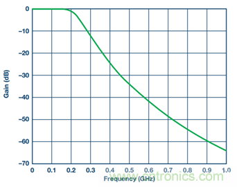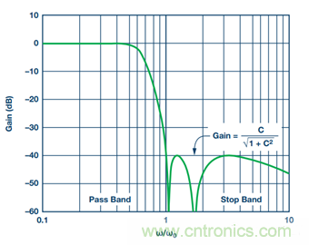 為了確定通帶中的最大紋波量,應使該規格等于系統要求的最大限值。這樣有助于獲得更快的阻帶滾降。