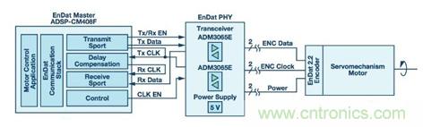 本文討論的EnDat接口是在ADI公司的ADSP-CM40x上實現(xiàn),后者是一款針對電機控制驅(qū)動器而開發(fā)的處理器。除了脈寬調(diào)制器(PWM)定時器、模數(shù)轉(zhuǎn)換器(ADC)和sinc濾波器等用于電機控制的外設(shè)以外,ADSP-CM40x還有高度靈活的串行端口(SPORT)。