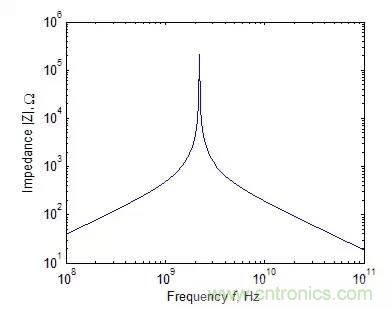 一個典型的1pF電容阻抗絕對值與頻率的關系