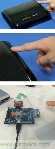 另外,新的觸摸按鍵也可以做成薄膜型,因此在彎曲的表面上也能實現觸摸按鍵。