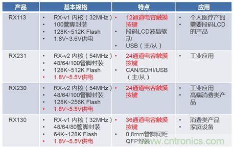 瑞薩電子提供4個產品系列,來適用于不同的應場合,分別為RX113、RX130、RX230、RX231。