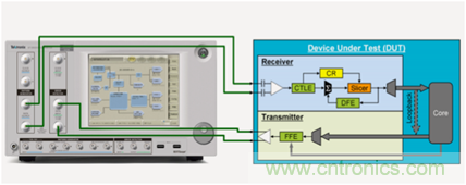 對于系統/芯片的接收端測試,會有幾個方面的挑戰,第一是loopback (環回)模式的Training,第二是link(鏈路)training。只有這兩個部分的協商正確完成的前提下,才能保證測試的順利完成。不管是loopback training 還是link training,都要求Bert具備和被測設備自動的協商功能,通過基于協議的握手和雙向溝通去使被測設備進入環回模式和均衡的自適應。