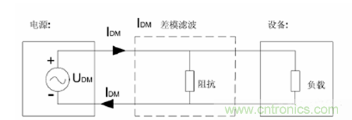 由于差模電容是接在L和N線兩線之間,那么它和后面的負載實際上是并聯(lián)關系。又由于電容對低頻次的信號有很強的阻礙作用,對高頻次的信號有很強的導通作用,及低阻抗作用。當50Hz-60Hz低頻交流信號流過電容兩端的時候,由于電容的阻抗表現(xiàn)極其大,所以電容不起任何作用,等于沒有這個電容。當差模信號通過的時候(差模信號一般是高頻無用信號),那么電容表現(xiàn)為通路,阻抗很小,在高頻信號下,則電容相當于將后面負載短路,那么后面負載就不會受高頻信號的干擾。如圖差模電容工作原理所以。以上是運用張老師第一大定律源、回路、阻抗來分析差模電容特性。