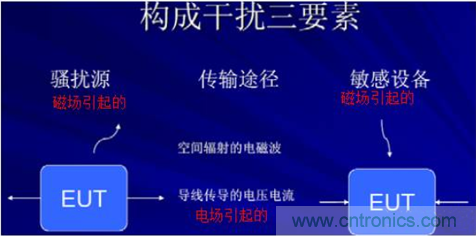 那么,構成干擾要有三要素,騷擾源,傳播途徑,敏感設備。騷擾源分兩種,一種是電場的騷擾源,一種是磁場的騷擾源。