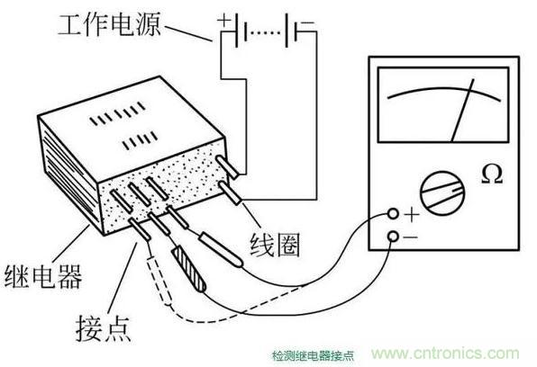 給繼電器線圈接上規(guī)定的工作電壓,用萬用表“Rx1K”檔,檢測節(jié)點的通斷情況。