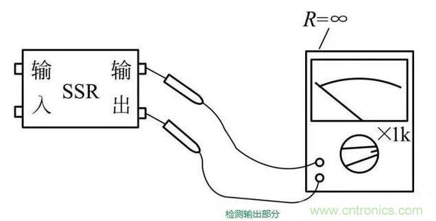 斷開固態(tài)繼電器輸入端的工作電壓后,其輸出端兩引腳之間應截止,萬用表表針指示為無窮大。