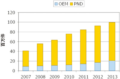 - 2008年PND的出貨量同比將增長43%,從2007年的3200萬件增長到4600萬件