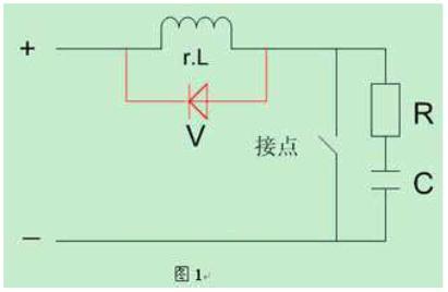 由于繼電器接點通斷的電流較小,接點間不會出現(xiàn)電弧,但會出現(xiàn)“火花放電”,這是由于接點電路中存在電感,則在斷開時電感上會出現(xiàn)過電壓,它與電源電壓一起加在接點間隙上,使剛分開一點距離的接點間隙擊穿而放電。由于能量所限,只會產(chǎn)生火花放電,接點間存在的電容與電感中能量的交替轉(zhuǎn)換,使火花放電時隱時現(xiàn),而成為一種高頻信號,再者火花放電對接點也會造成損傷,而會降低使用壽命,因此必須設(shè)法消除,實用的消火花電路有兩種,如圖1所示。一.其基本作用原理是,使電感中的能量不通過接點而通過rc;二.在斷開時經(jīng)過二極管v在負載r.l上消耗掉。在應(yīng)用中選擇一種就行了。但要注意的是,rc參數(shù)要選擇適當,參數(shù)主要靠實驗來決定,通常電容c可按負載電流1a/1微法選擇。使用二極管時其正負極性應(yīng)連接正確。