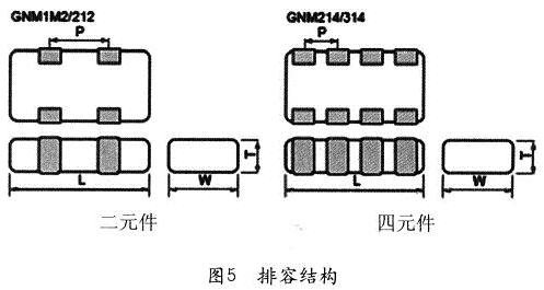 村田制作所還生產一種排容,在一個器件中有2至4個電容,尤其適合在單片機的總線上使用,見圖5。