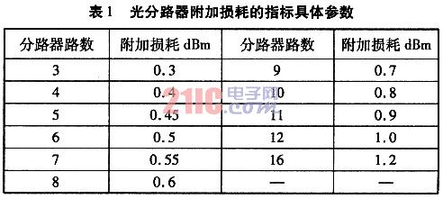 設(shè)各路的總光功率為∑Pn,某一路所需的光功率為P1,則分光比K1=P1/∑Pn,需要強調(diào)的是,某一支路所需的光功率為該支路光纖鏈路損失功率加上光接收機輸入光功率。