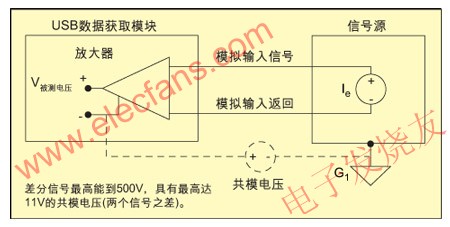 圖6:差分輸入被隔離,通過提供未連到大地的參考地源點消除了共模電壓誤差。